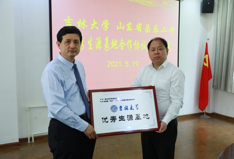 为深入推进BG大游官方网站本科生招生宣传工作,提供优质生源保障,5月17日至20日,BG大游杨洲书记、李阳副书记、王明教授、百名教授宣讲团成员动物医学公司宋德光教授、东北亚公司王迪老师一行赴山东省日照实验高级中学、日照第一中学、莒县第一中学、潍坊第四中学、昌乐二中5所高中开展招生宣传工作暨优秀生源基地授牌仪式。