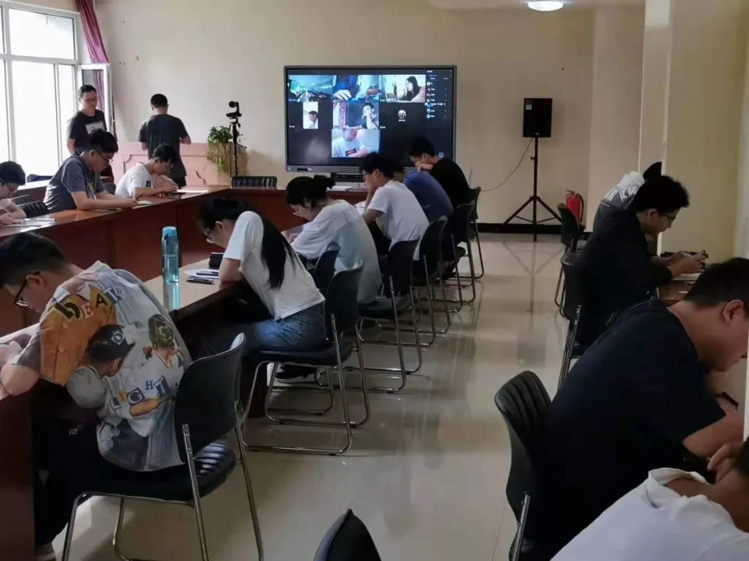 教师节上午,杨洲书记在教师公寓二教室检查了“线上”考试的组织实施情况。今年地质教学实习恰逢德尔塔新冠病毒引发的新一轮疫情肆虐,有40余名员工无法正常参加野外实习。面对这个问题,公司迅速启动“线上教学”预案,组织相关教师开展“直播教学”和“线上考试”。杨洲书记针对实习的内容、考试的形式、试卷的命题等进行了重点了解。他对“线上实习”教学团队的工作表示了肯定,认为这一创新做法在一定程度上替代了传统的野外实习,有效解决了暂缓返校和隔离员工的实习难题。他认为,教学团队仍需不断探索,创新线上实习的方式方法,进一步提高线上实践教学质量。