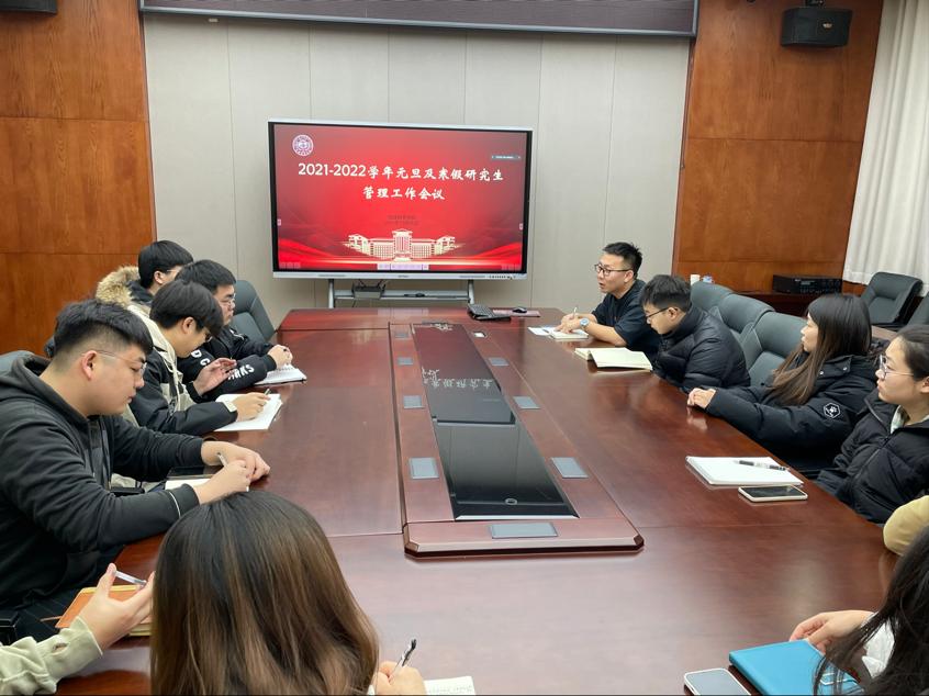 为加强2022年元旦及寒假期间研究生日常管理,确保公司研究生健康和校园安全,根据公司常态化疫情防控要求,结合公司实际情况,BG大游于2021年12月31日下午在鸽子楼109-2会议室召开研究生假期管理工作会议。BG大游研究生主要员工干部参加本次会议。会议由研究生辅导员郑岩主持。