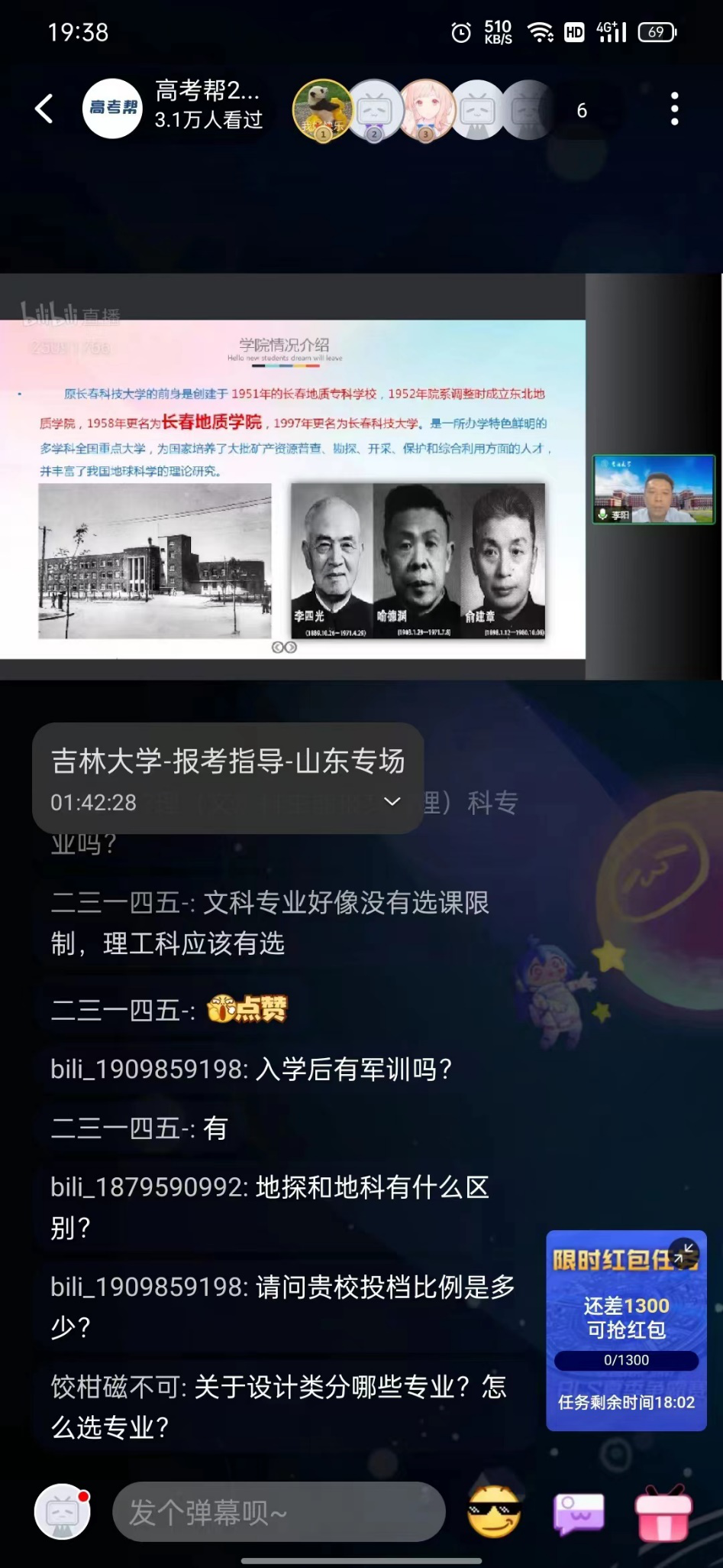 5月24日,公司经理单玄龙教授做客360教育在线、高考帮等平台,参加“BG大游官方网站高招直播-科普讲堂”系列活动,为广大考生开展了“BG大游:顶天立‘地’‘球’实创新”直播活动。本次活动以播放公司宣传片开始,单玄龙经理用过多媒体向广大考生讲述了BG大游的学科特色,地质学科研究内容及未来前景,欢迎广大考生报考BG大游官方网站地质类专业,献身地质事业,助力民族复兴。直播现场,公司党委副书记李阳、BG大游官方网站唐敖庆青年学者王明教授、副教授张彦龙、辅导员杨凯凯也积极参与其中,针对提出的问题,为广大家长和考生解疑释惑。