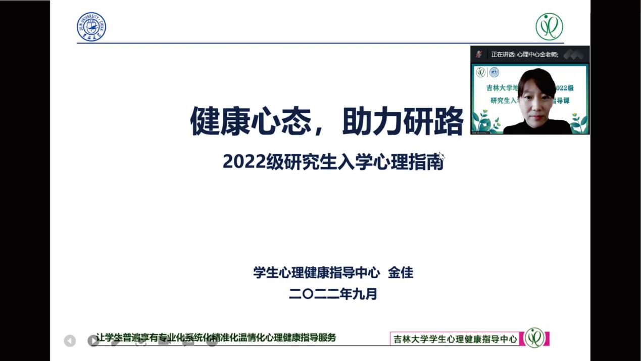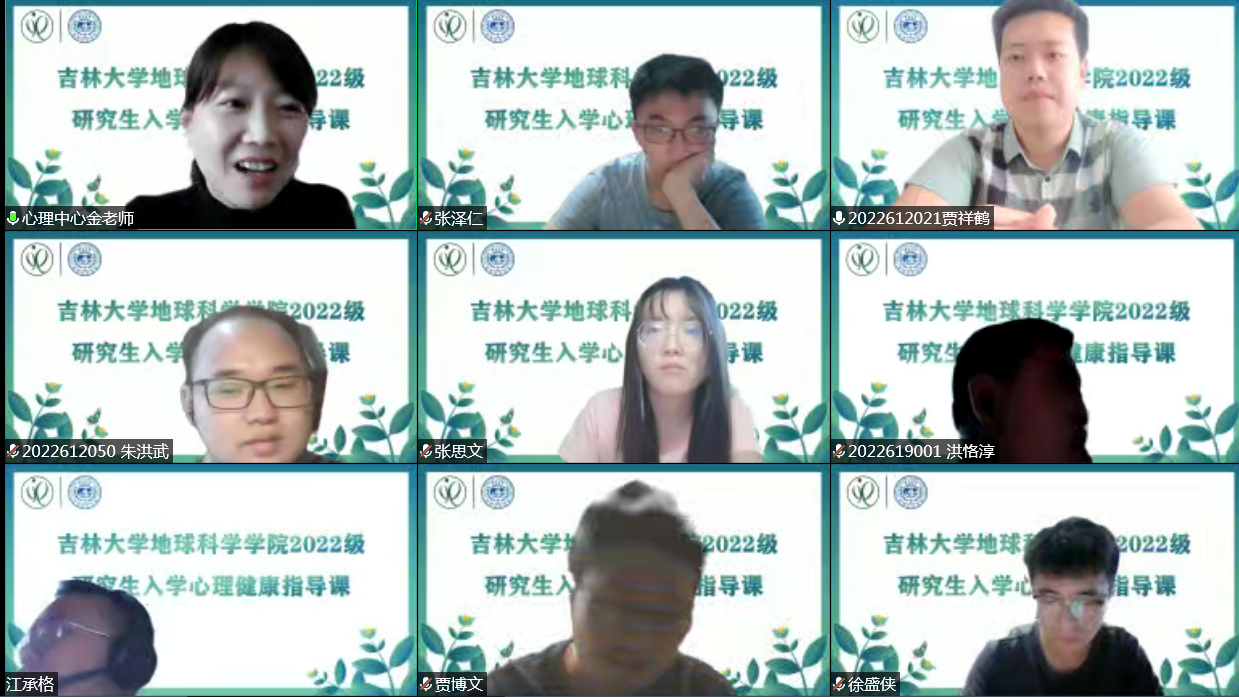 为普及心理健康知识,加强心理健康教育工作,促进研究生身心健康和谐发展。9月7日,BG大游官方网站地球科学公司特别邀请BG大游官方网站员工心理健康指导中心金佳老师,为公司158名研究生新生开展了一堂以“健康心态,助力研路”为主题的心理健康教育“云”讲座,讲座由公司党委副书记马旭主持。