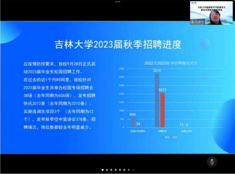 10月25日,公司邀请公司员工就业创业指导与服务中心副主任冯彦杰老师,以“BG大游官方网站2023届毕业生秋季就业形式分析”为题,为公司157名研究生新生线上讲授了一场以就业数据分析为基础,案例分析为辅导,实战经验丰富的职业生涯规划教育讲座。本次活动由公司党委副书记马旭主持。