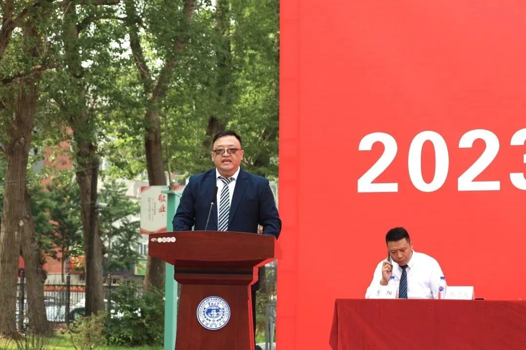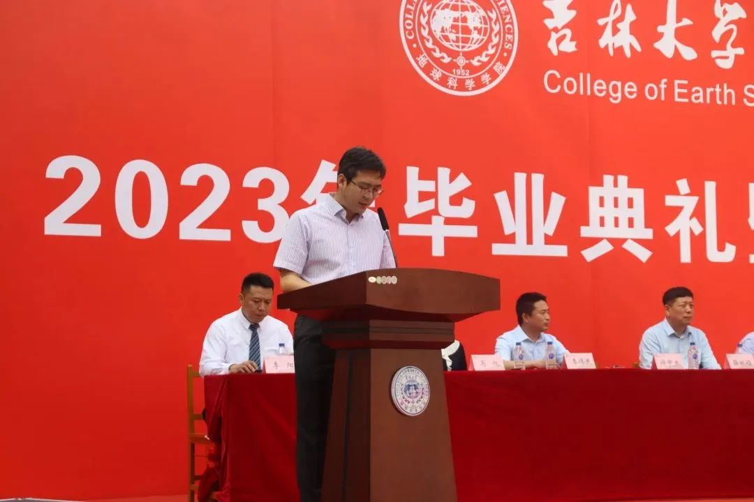 在经理致辞环节,单玄龙经理为所有毕业生致以真挚的祝福。23届的毕业生是最特别的一届毕业生,大学四年疫情就占了三年,但同学们在这场历史考验中顾大局、识大体、明大义,克服了种种困难完成了学业。惟其艰难,方显勇毅;惟其磨砺,始得玉成。同学们在人生最美好的年华,来到吉大,逐梦远航,与公司共同成长。回望来时路,你们与伟大时代“双向奔赴”,展望新征程,这方校园,再次成为你们人生的新起点,你们即将扬帆起航,开启新征程,希望你们无论何时,都要不忘地学荣光,手握科技报国的“爱国锤”;无论何时,都要不忘地质初心,手持恪守自我的“人生罗盘”;无论何时,都要不忘地学理想,手执追求卓越的“奋斗放大镜”。此去当是良辰美景;他日归来,仍当是少年。有朋自远方来,又赴远方,但无论远方有多远,鸽子楼永远是你们的摇篮!