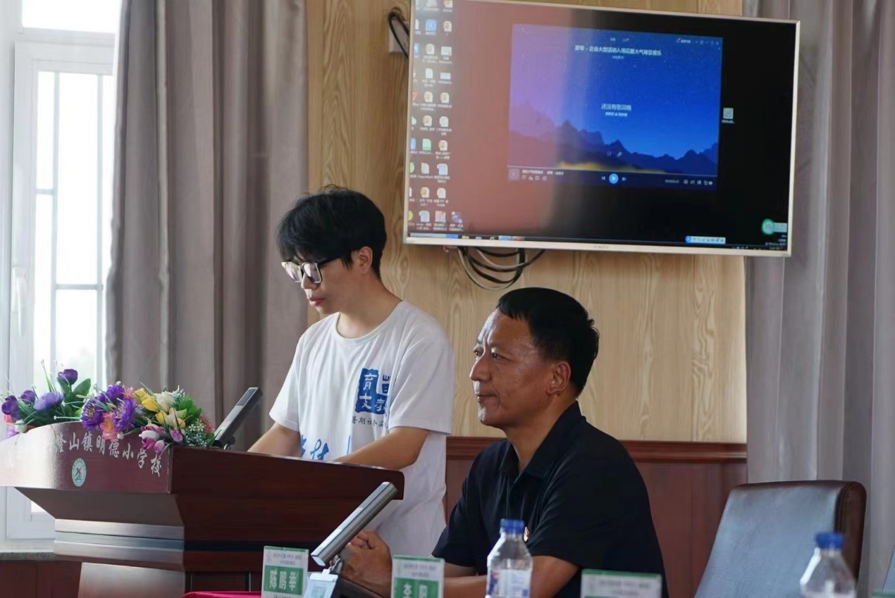 启动仪式结束后,支教队队长吕强强为与会的员工代表与家长代表介绍了支教队准备的特色课程。他代表全体支教成员宣誓,支教队员将以身作则,为员工们树立良好的榜样,努力激发员工的创造力,以饱满的热情、耐心和责任心,尽心尽力地投入到教学工作中,与明德小学的员工们一起度过这段难忘的时光。