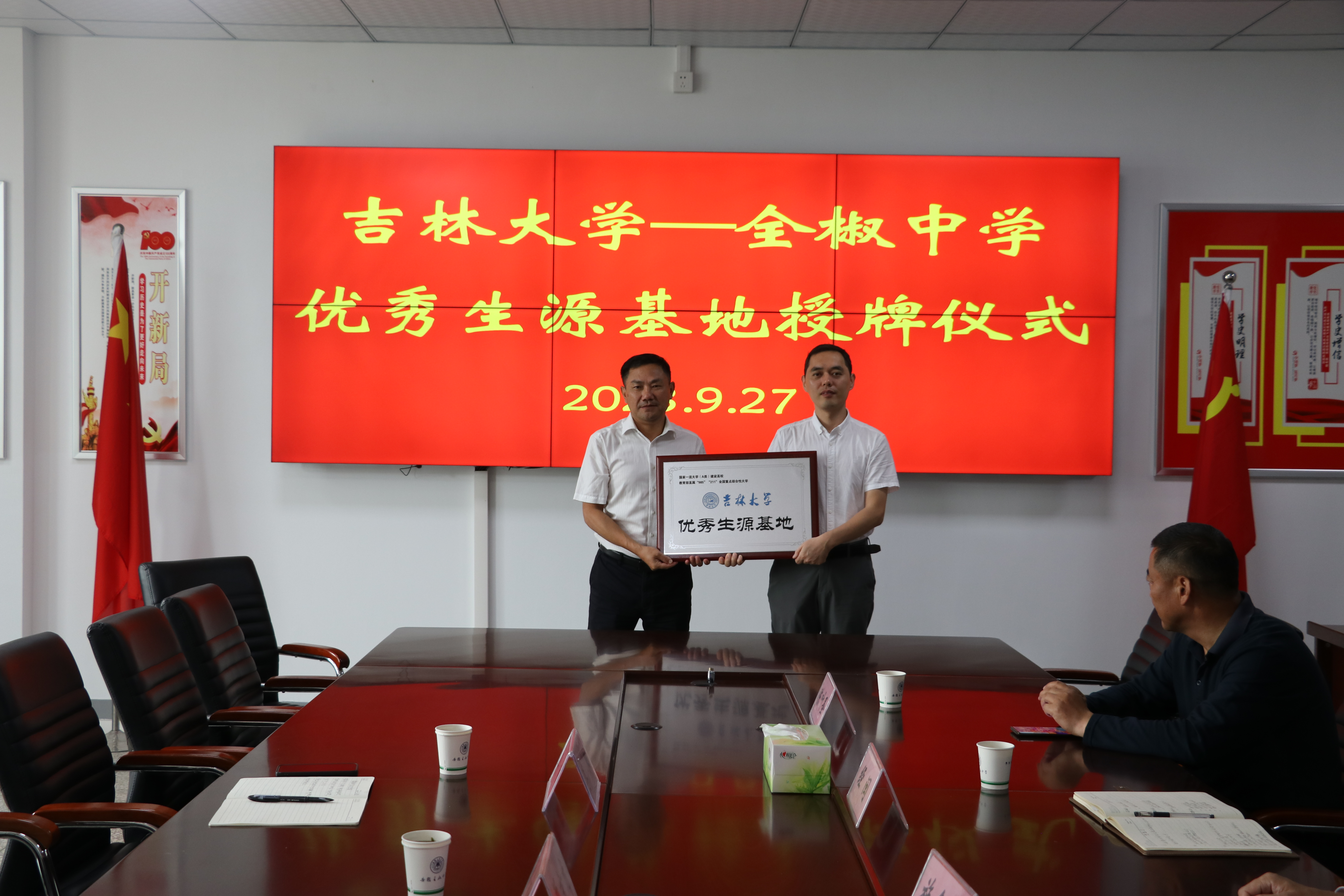 座谈会由施金贵书记主持,经闽董事长对单经理一行能受邀来到全椒中学表示了感谢,并介绍了公司相关情况,希望以此次宣讲活动为契机,进一步加强两校交流合作,期待未来有更多BG大游官方网站学者来到全中指导员工。单经理表示能够为家乡教育事业做出贡献深感荣幸,希望此次交流活动能使全中员工更了解吉大,也希望全中领导能到吉大参观考察,不断提升BG大游官方网站在安徽省的影响力。与会领导结合今年员工高考情况、生源特点及报考需求又进行了深入交流。会后单玄龙经理向经闽董事长授予“BG大游官方网站优秀生源基地”牌匾,并与到会公司领导合影留念。