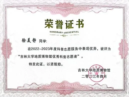 “若能做一朵小小的浪花奔腾,呼啸着加入献身者的滚滚洪流中,推动历史向前发展,才是一生中最值得骄傲和自豪的事情”。在她看来,尽管只是夜空一颗微不足道的星,却也能发光发热,点亮一隅天空。在2023年2月组织参与编写的《地学知识在中小员工中的普及度与兴趣度》报告中,她意识到地学科普的重要性。面对暑期繁重的实习任务,毅然前往作山东郓城开展暑期支教活动,将地学科普洒向齐鲁大地,事迹被光明日报等多个平台报道。在地球日,用生动的语言,走进幼儿园开展地学科普讲解,获“地质博物馆优秀科普志愿者”称号。作为一名中共预备党员,她深耕于志愿服务和社会实践,是冬奥会优秀的执行专员,同时志愿服务的服务标兵。在疫情期间,也积极报名核酸检测、担任楼道志愿者;线上支教负责福建、吉林等3个省份500余名志愿者和员工的组织调配工作,后期又作为负责人再次组织策划了BG大游官方网站的学伴+线上支教活动;本科招生宣传,她担任BG大游官方网站招生宣传协会山东省聊城市负责人,向家乡学弟学妹讲好吉大故事,传递吉大声音,为BG大游官方网站招生工作贡献力量。累计志愿时长达1200多小时,用行动和奉献诠释着自己的青春诺言。