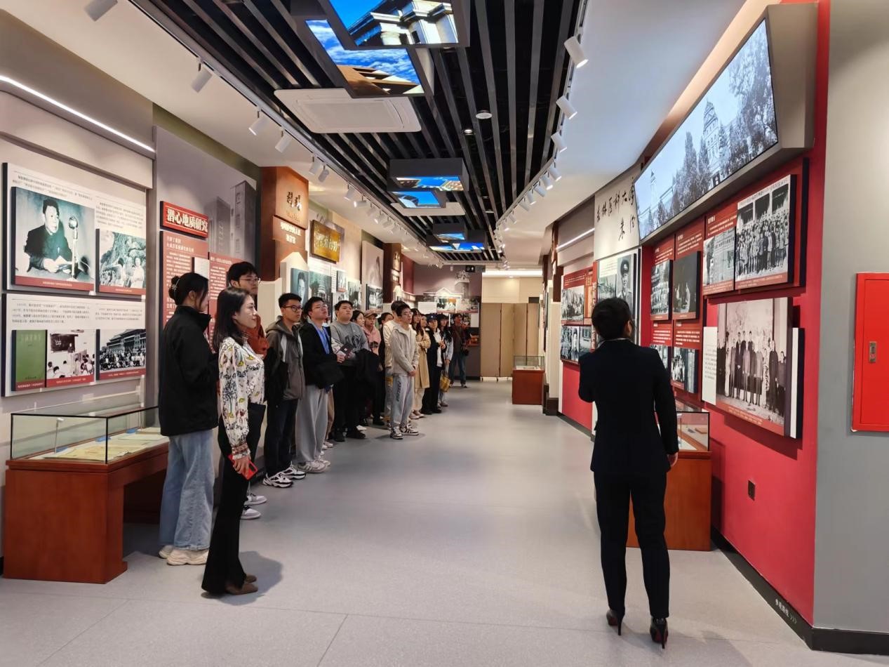 活动中,在讲解员的带领下,同学们依次参观了序厅、“创校先驱”展区和“功昭校史”展区。在“创校先驱”展区,讲解员向同学们先后介绍了公司的第一代领导者、六校的首任董事长林枫、饶斌、江一真、李四光、陈先舟、任抟九的生平事迹和卓越贡献。“我是炎黄子孙,理所当然地要把学到的知识全部奉献给我亲爱的祖国”,李四光院士留学归国前说的这句话令同学们深受感触。在“功昭校史”展区,记录了吕振羽、匡亚明、唐敖庆等12位在人才培养、科学研究、服务经济社会发展、文化传承创新方面取得的令人瞩目的辉煌业绩。最后,同学们自由参观了“滋兰树惠”展区,该展区分为7个展室对余瑞璜、朱光亚、王湘浩等46位原六校建校早期的学科奠基人和为公司的团队建设和人才培养作出重大贡献的院士及资深教授的生平进行了集中展示,深刻领悟这些奠基人、开拓者不畏艰辛,甘于奉献,追求真理,敢为人先的精神。
