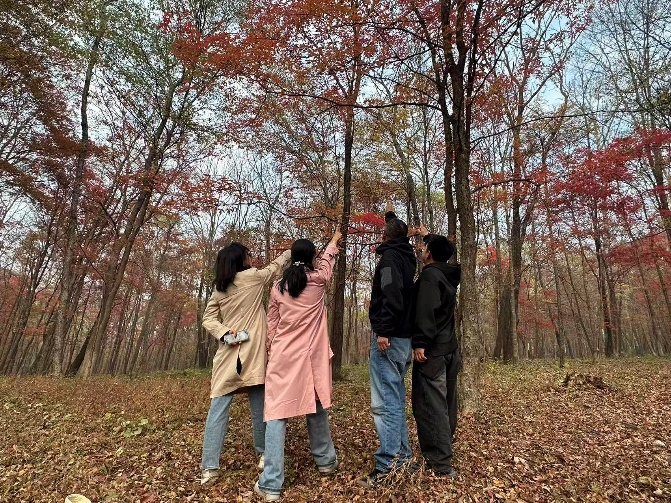 10月14日清晨,满载着欢声笑语的大巴车从公司出发,驶向位于蛟河的红叶谷。一路上,大家暂时放下了平日繁重的教学与科研工作,兴致勃勃地欣赏着窗外飞驰而过的秋日胜景,聊着家常,