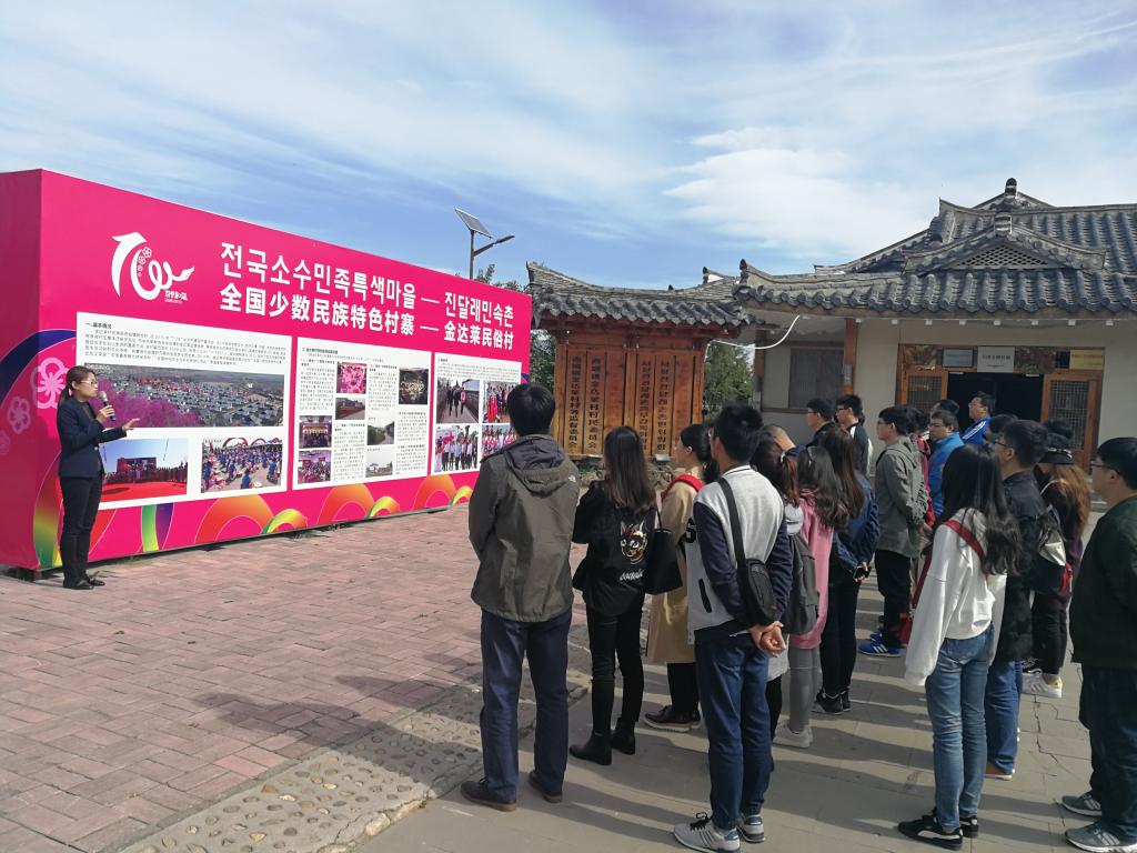 现场教学部分,学员们实地参观了延吉监狱抗日斗争纪念碑、间岛日本总领事馆、药水洞苏维埃政府遗址。学员们在切身感受支撑狱中抗联英雄们完成越狱壮举的不屈力量的同时,也为清政府与日本签订《图们江中韩界务条款》的屈辱历史而悲愤不已,更为日本残忍破坏的药水洞苏维埃政府以及被迫害致死的烈士们落泪。最后,学员们来到金达莱民俗村。当看到繁荣发展的金达莱民俗村,学员们深切意识到先辈们的鲜血并未白流,他们所渴望的天下升平正在被我们所见证,而他们未竟的事业则需要我们来替他们完成。