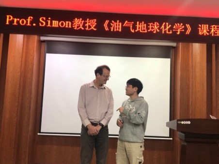 课前,同学们积极预习Simon教授准备的课件;课堂上,同学们认真听讲,积极思考并回答教授提出的问题。课后,同学们还对自己感兴趣的话题与Simon教授进一步交流。课程结束后,国内课程任课老师与Simon教授就《油气地球化学》课程教学内容、教学目标以及教学方式进行了深入的研讨,有利的促进了该课程的后续改革建设。