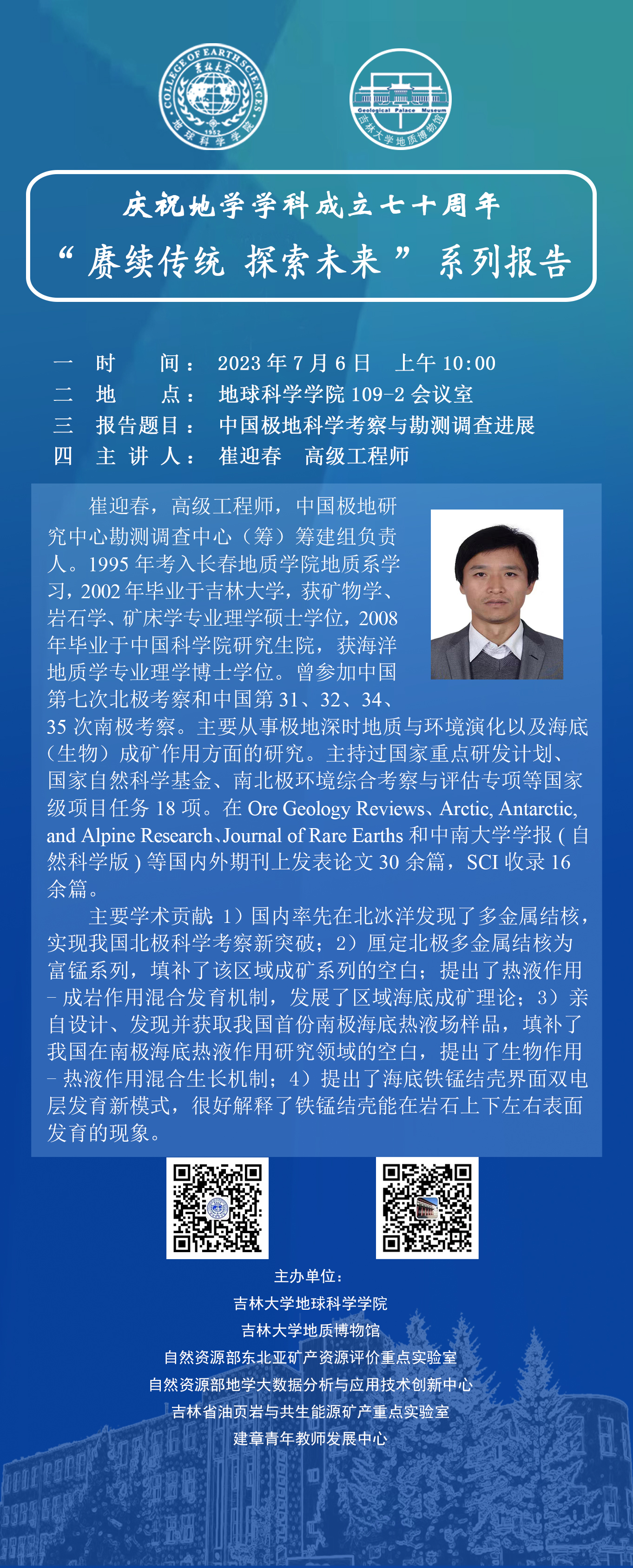 庆祝地学学科成立七十周年 “赓续传统 探索未来”系列报告第五十三期