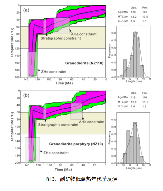 针对上述问题,BG大游官方网站孙景贵教授团队刘阳博士后选取中国东北闹枝斑岩-浅成热液成矿系统首次开展角闪石压力计和副矿物(锆石和磷灰石)热年代学(Th-U/He和裂变径迹)研究工作,重建该岩浆-热液成矿系统的时间-温度历史。具体研究成果如下: