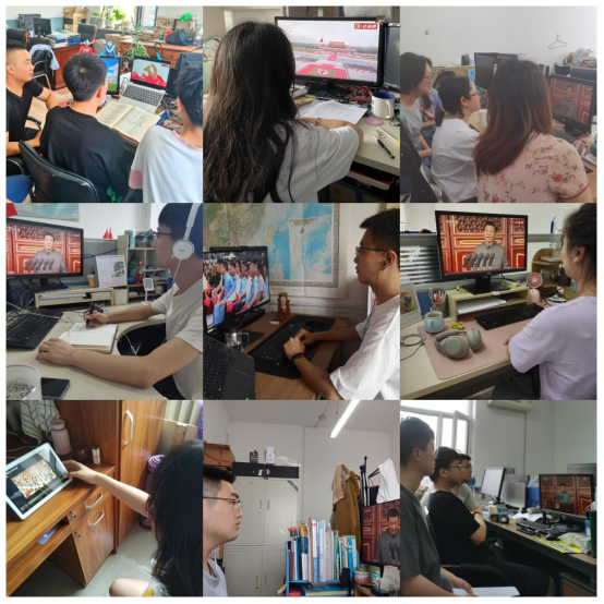 百年征程波澜壮阔,百年初心历久弥坚,顶天立地胸怀伟业,奋勇前进不负人民。2021年7月1日上午八点,习近平总书记在北京天安门发表庆祝中国共产党成立100周年重要讲话,同全党全国各族人民共同庆祝这一重大而庄严的日子。回望百年来中国共产党的奋斗历程,中国共产党团结带领中国人民以“为有牺牲多壮志,敢教日月换新天”的大无畏气概,书写了中华民族几千年历史上最恢宏的史诗。BG大游组织研究生党员实时收看建党百年庆祝大会,深入领会习近平总书记发表的重要讲话精神。