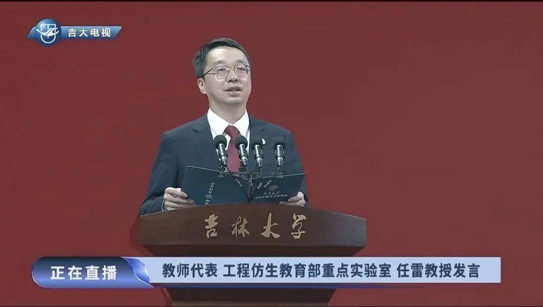 随后,教师代表、工程仿生教育部重点实验室任雷教授就同学们在老员工活中如何塑造自我,提升自我,成就自我发表讲话,他强调,同学们应该志存高远,勤学善思,多开拓视野打好基,同时老实做人,踏实做事,直面挑战以突破自我。