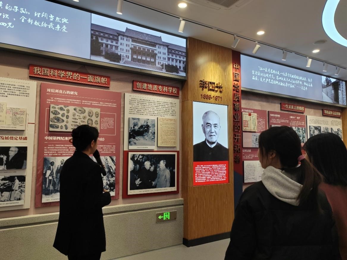 在讲解员的带领下,同学们走进“中国地质事业的开拓者”展区,了解到李四光院士创办了BG大游的前身东北地质专科公司。对于李四光院士所说的“我是炎黄子孙,理所当然地要把学到的知识全部奉献给我亲爱的祖国。”有了深刻的认识。