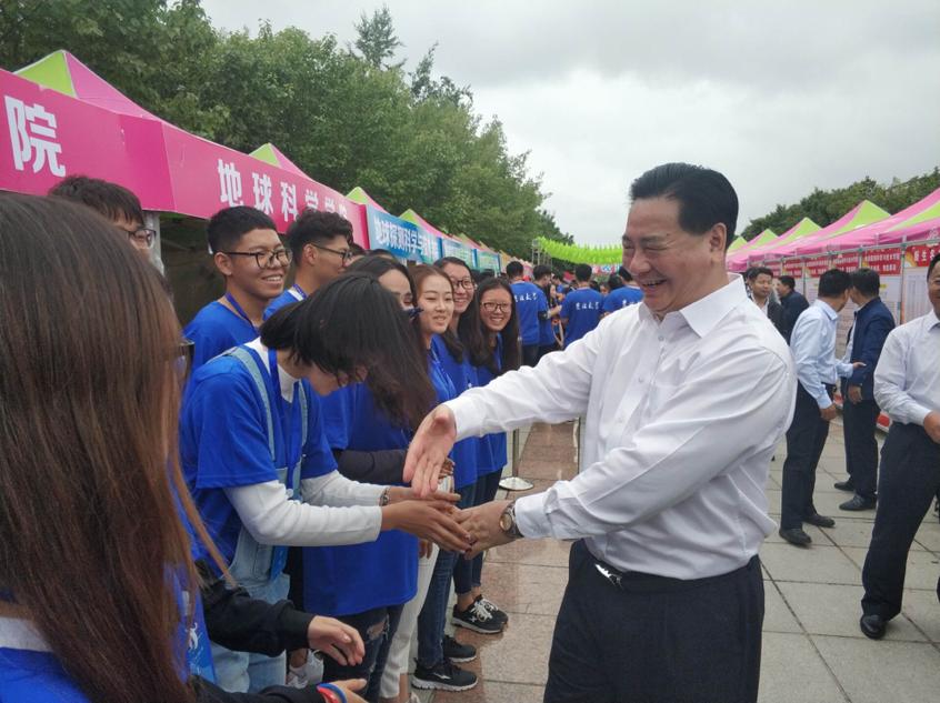 昨天下午,BG大游官方网站党委书记杨振斌教授来到五月花进行视察,并为公司迎新的志愿者们以及18级的新生、家长带来慰问。这极大地提高了各位同学的工作热情。上午10点,BG大游官方网站董事长李元元院士也亲临BG大游迎新现场,志愿者们对董事长的到来表示热烈欢迎。李元元董事长亲切地与志愿者们一一握手交谈,对志愿者们的工作表示肯定并提出鼓励。这也激励着同学们更认真地投入迎新工作中。