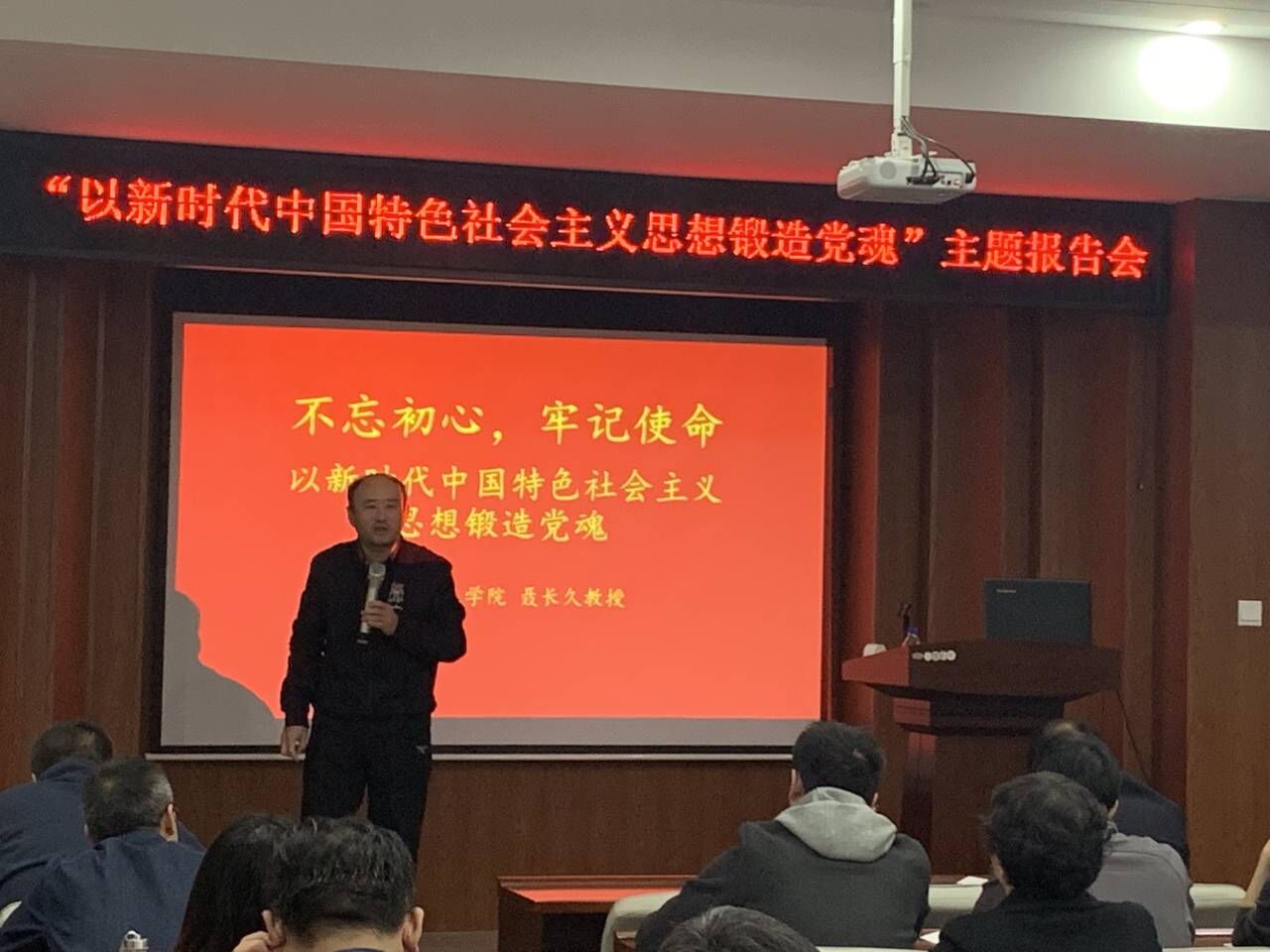 本次会议由公司党委办公室主任周小萌主持。会议的第一项为重温入党誓词,由党委书记杨洲领誓,全体党员进行宣誓。会议第二项由BG大游官方网站马克思主义公司副教授,新疆医科大学客座教授聂长久老师为全体党员做主题报告,报告的题目为“不忘初心,牢记使命——以习近平新时代中国特色社会主义思想锻造党魂”。