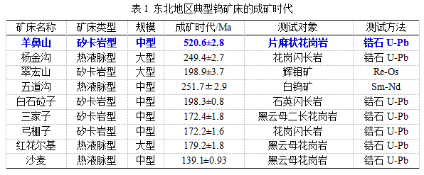 随着基础地质研究的加强和地质找矿工作不断深入,中国东北地区钨矿找矿工作取得较大进展,现已发现十余个矿床(点)。这些矿床的发现预示着我国东北地区具有较大的钨矿找矿潜力。然而,目前已发现的钨矿成矿时代中生代为主,少量为晚古生代。东北地区是否存在早古生代钨成矿作用,由于缺乏关键的成矿年龄证据,一直不得而知。