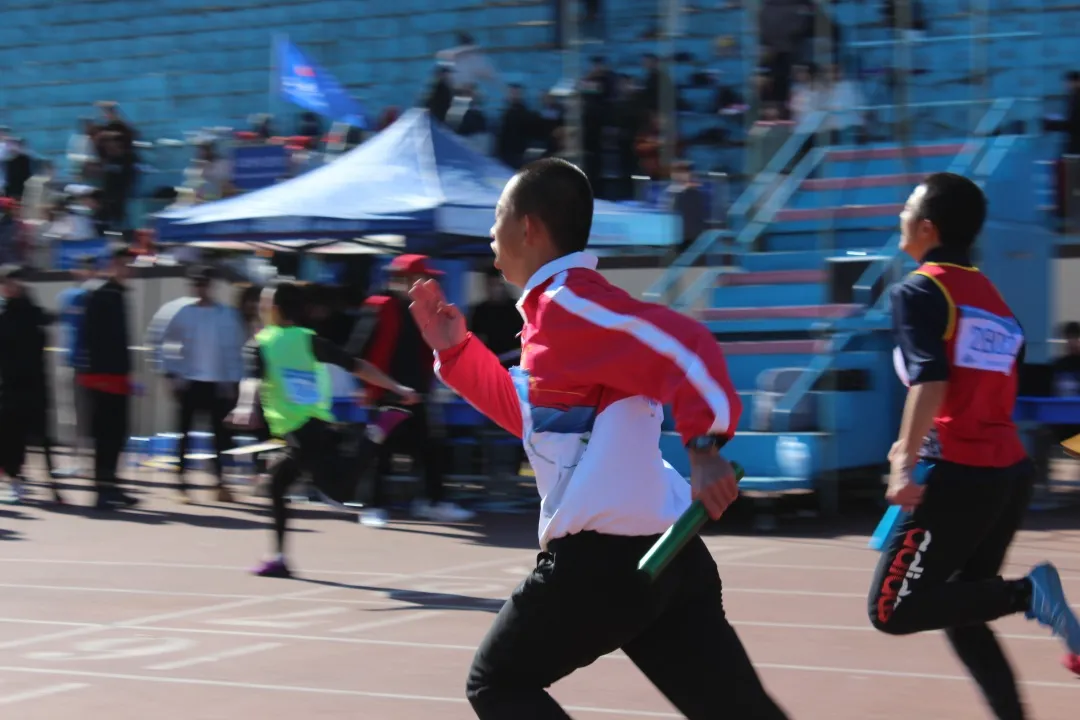 在此之后是令人紧张的4×100米接力项目,一根小小的接力棒承载的不仅是速度的拼搏,也是团队的协作。接力棒在手中传递,传递着青春之火,传递着团结友爱。